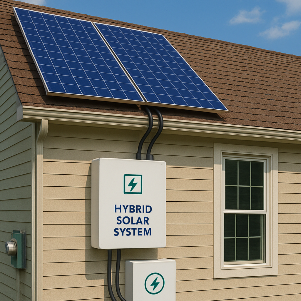 A Hybrid Solar System combines the features of both on-grid and off-grid setups. It is connected to the grid while also having battery storage for backup. This means you can store excess solar power for use during power cuts or at night, while still benefiting from grid connectivity when needed.